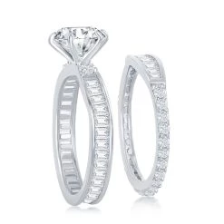 Simona women Sterling Silver Six-Prong Multi-Shaped Half Band Baguette CZ Engagement Ring Set