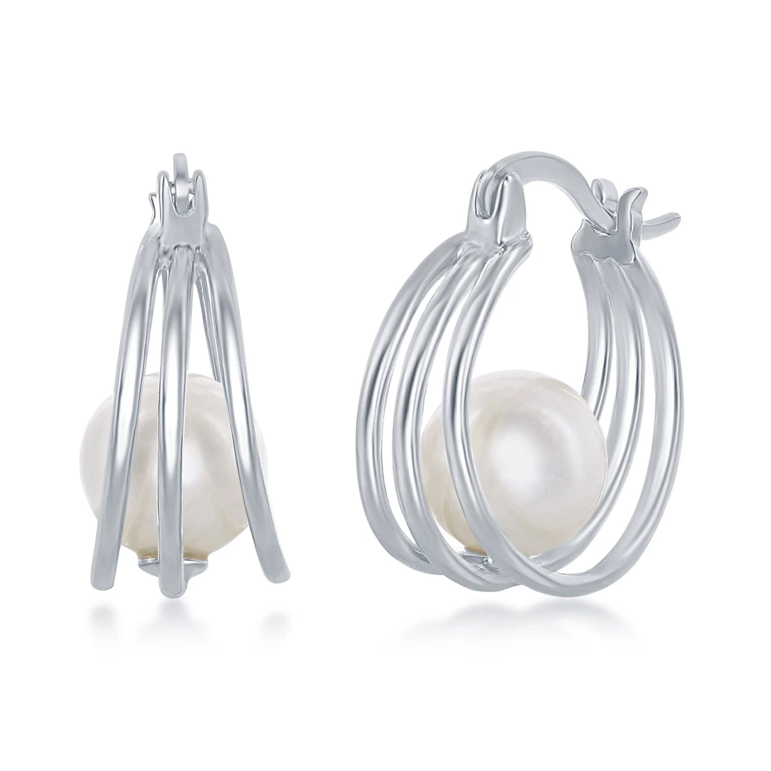 Simona women Sterling Silver 8mm FWP Triple Hoop Earrings