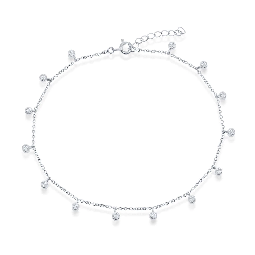 AN IMMEDIATE ENTRY TO A STANDARD OF CLASS AND ELEGANCE Made of 925 Sterling embellished with dangling bezel-set cubic zirconia stone, a new easy and instant opportunity to increase elegance in your style. A bracelet that can be stack with other jewelry pieces for a cool fashion statement. Strong and durable for daily wear yet not too thick for a comfortable fit. Not only can be worn as anklet, but also as bracelet.