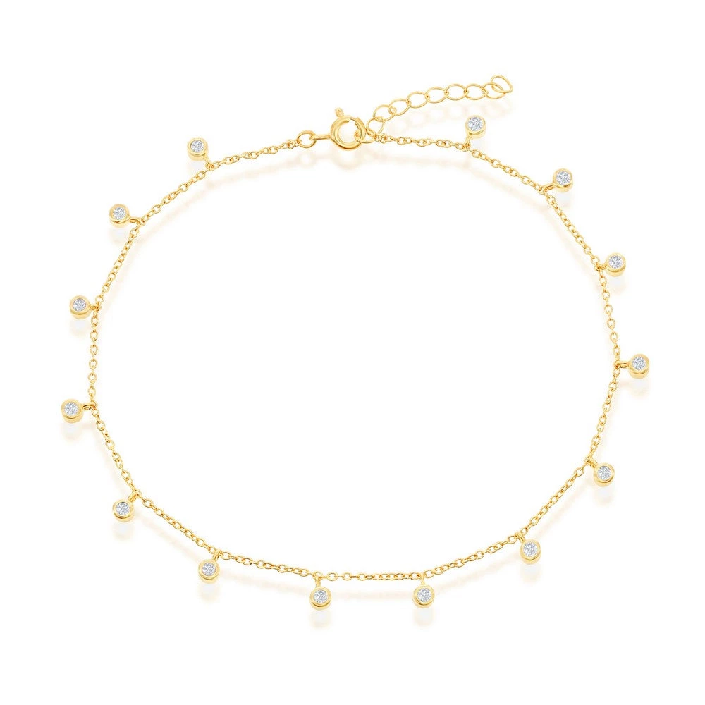 Simona women Sterling Silver Bezel-Set CZ Charms Anklet – Gold Plated